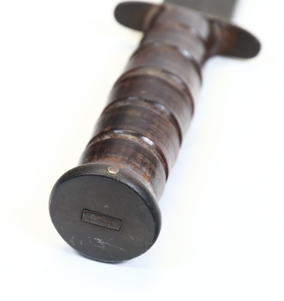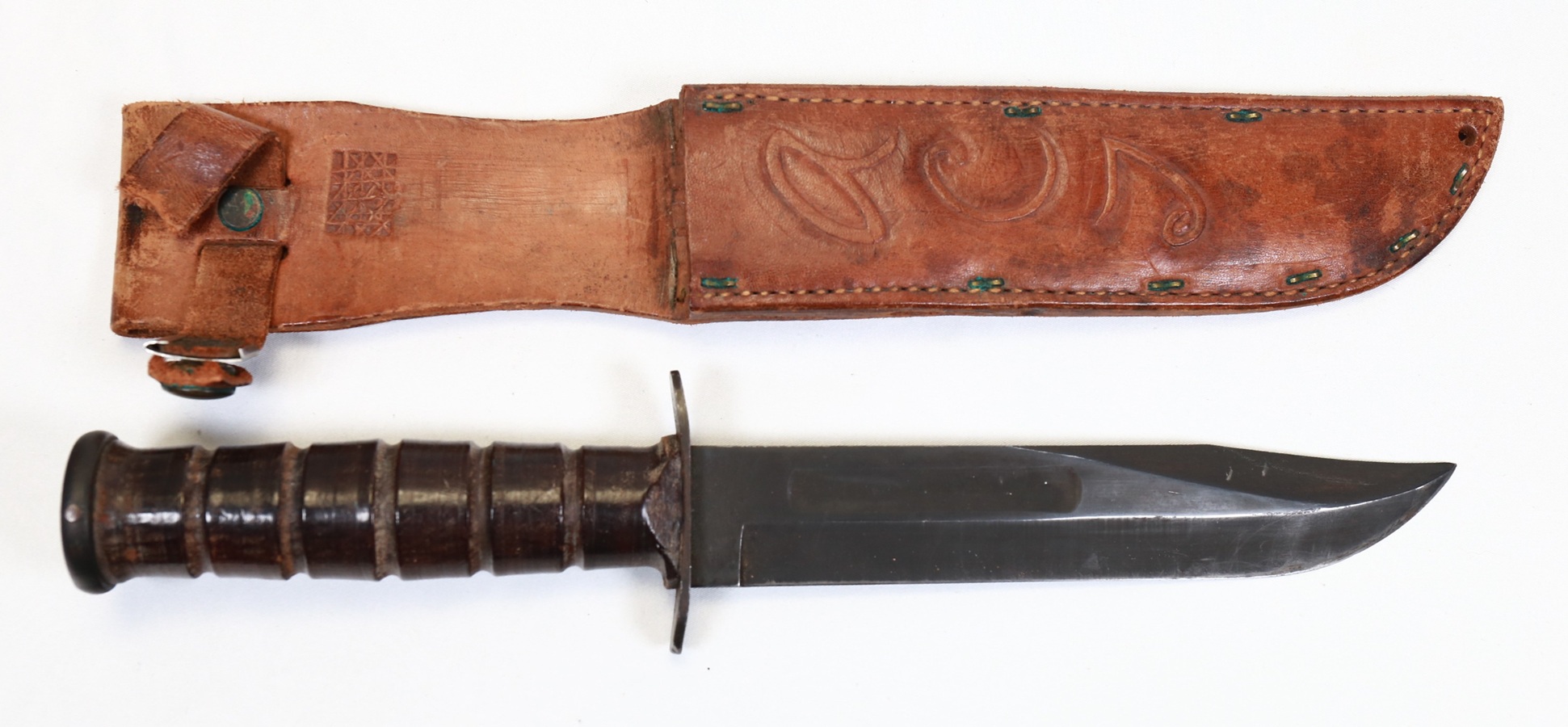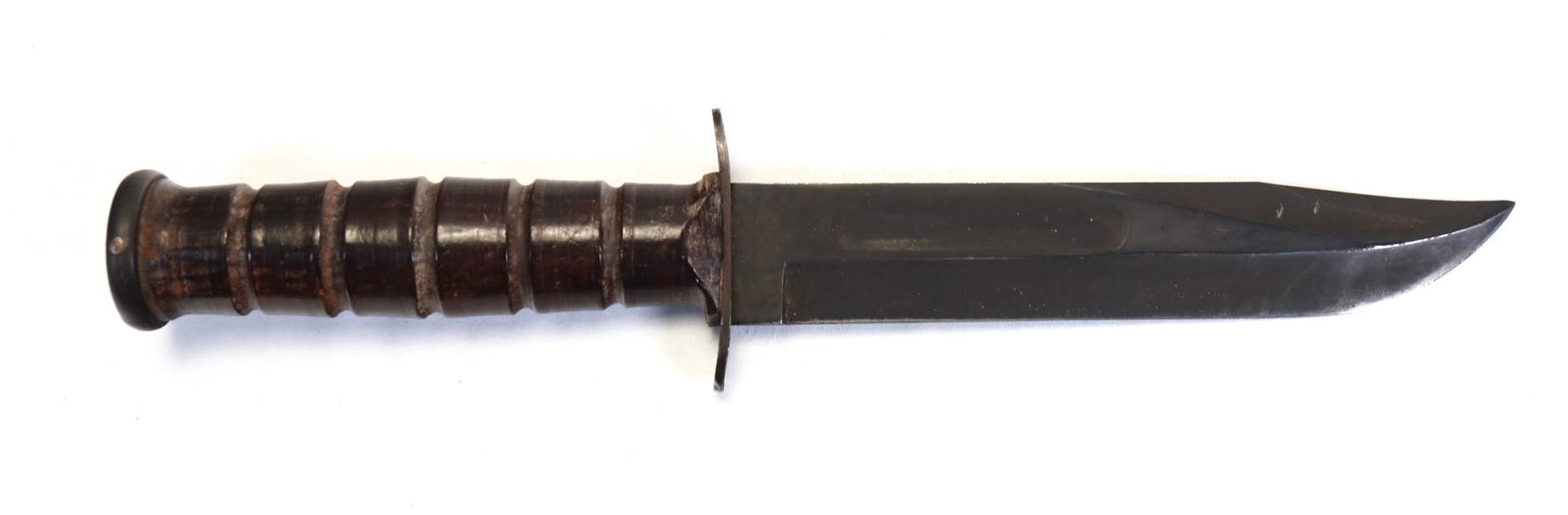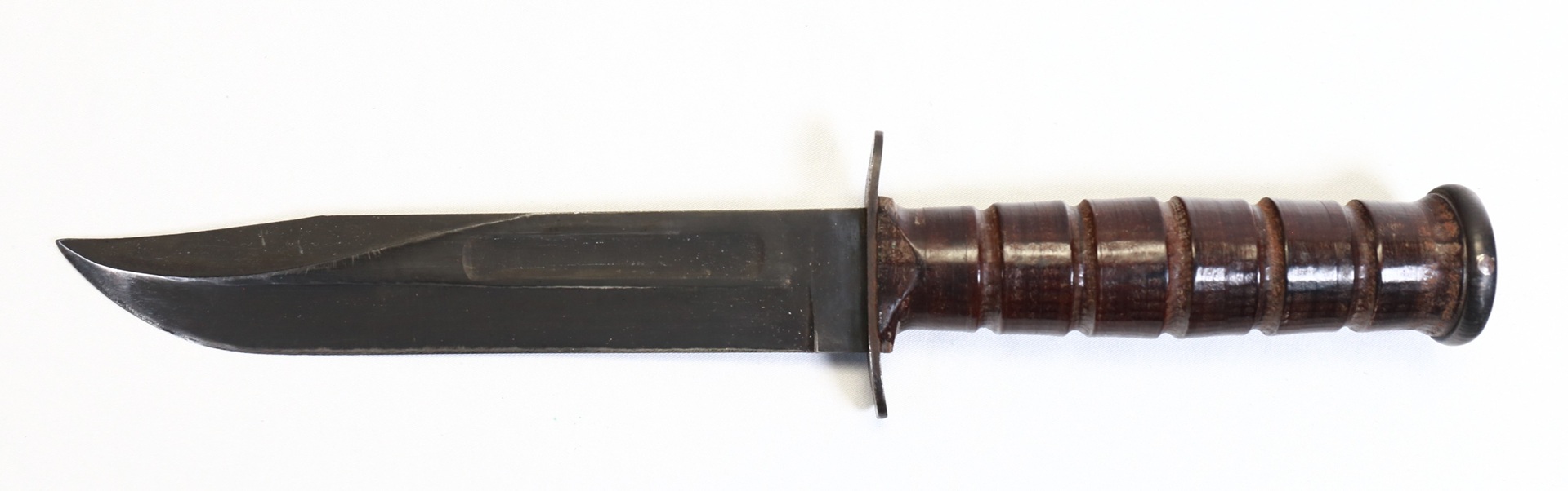 The Ka-Bar knife was adopted by the USMC in 1942 as a versatile utility and fighting knife. It was created to meet the need for a modern combat blade that could work as both a weapon and a tool, following complaints about the outdated trench knives from World War I. Designed for hand-to-hand combat and a variety of field tasks, it was produced during WWII by several companies, including Union Cutlery Co. (Ka-Bar), Camillus, PAL, and Robeson, each with slight design and marking differences valued by collectors. By 1944, the knife had become so iconic that Marines called it the “Ka-Bar” no matter who made it.